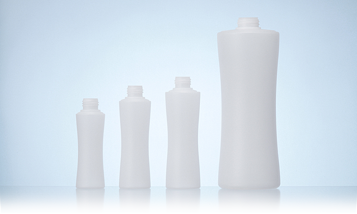 本体中央にくびれを作り、持ちやすさも備えた「変型」液剤容器(シャンプー・ローション・e.t.c.向け)です。