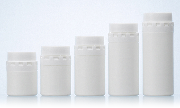 ロック式(セーフティー)機構を備えた錠剤容器です。