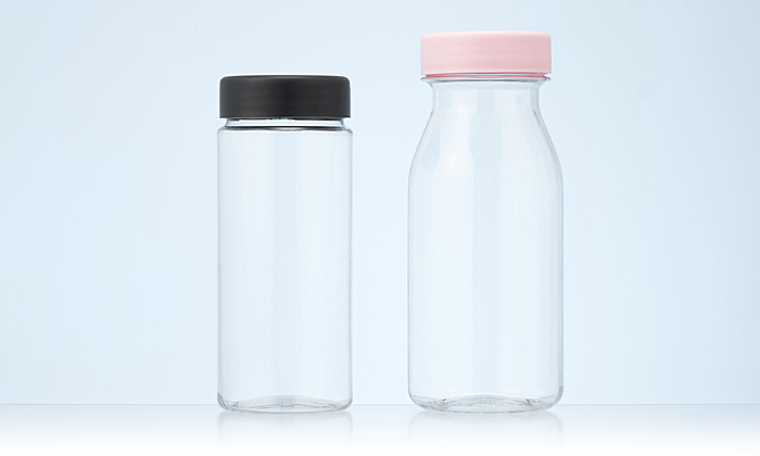 ミルクボトルのデザインとキャップの着色で、PET容器の新たなトレンドを提案いたします! スムージー容器として、ノベルティ等にも最適です!